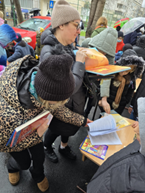 2. Împărțirea de pliante cu beneficiile deplasării pe jos sau cu bicicleta/trotineta;